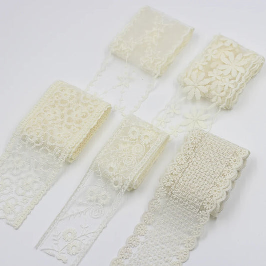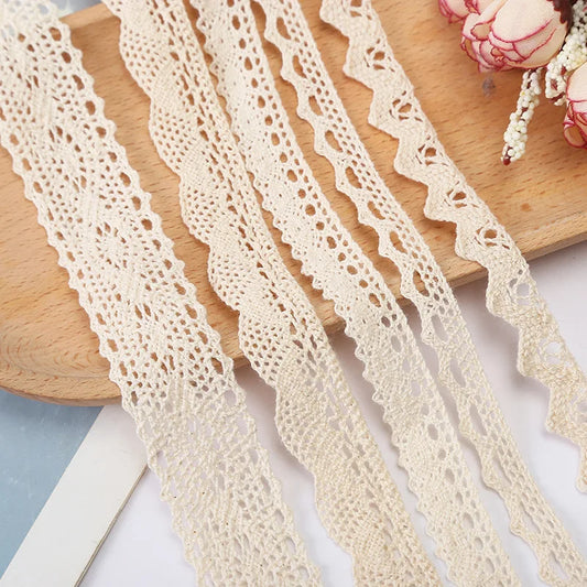 Cinta de encaje de algodón para costura, accesorio de 5M para costura color Beige.