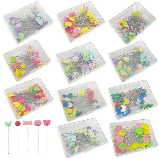 Alfileres de colores mezclados, herramienta de costura con cabeza de flor, aguja fija, 50, 100 y 400 unidades por caja