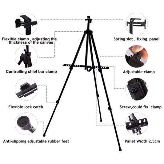 Caballete de arte reforzado plegable, trípode de metal, caballete de exhibición con bolsa portátil para pintura al aire libre