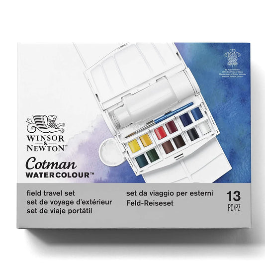 Juego de acuarela Winsor & Newton Cotman, juego de viaje, 12 colores, mezcladores, pincel de con depósito de agua, paleta de mezcla, lavado de pinceles