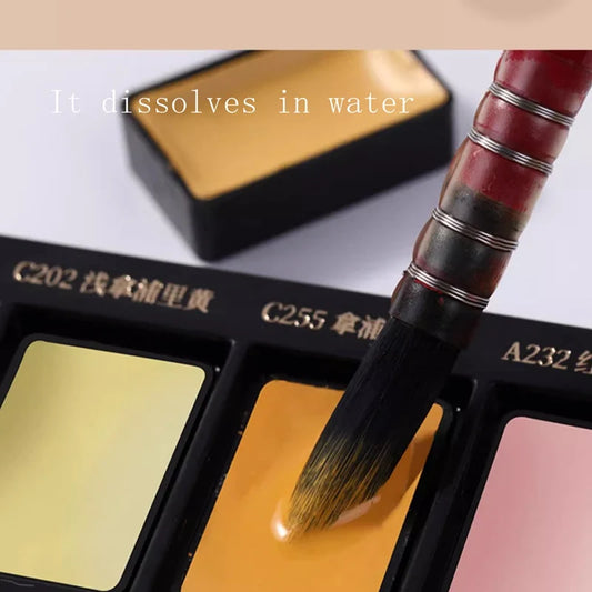 Paleta de pintura de acuarela sólida metálica nacarada, portátil, empaquetada a mano, suministros de arte, 24 colores