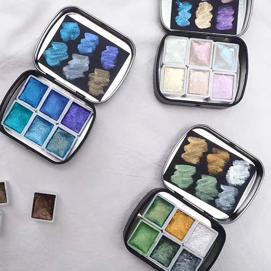 POEZIE-Caja de acuarela metálica sólida profesional, 2ml, 6 colores, brillo