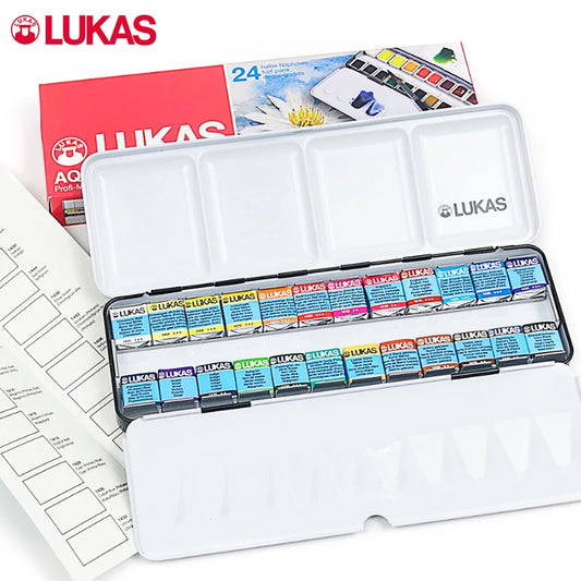 Lukas-pintura de acuarela sólida, pincel de acuarela profesional transparente, caja de Metal, Paleta portátil, 24 colores, Alemania