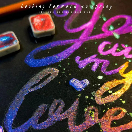 Pintura de acuarela sólida metálica, 16 colores, acuarela profesional nacarada