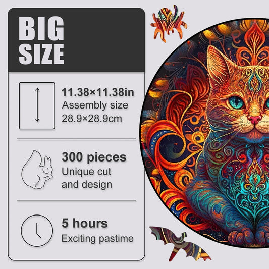 Rompecabezas de madera 3D con forma de Mandala de gato, rompecabezas retro con diseño
