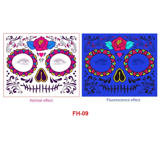 Tatuaje facial fluorescente impermeable, pegatina facial temporal para Halloween.