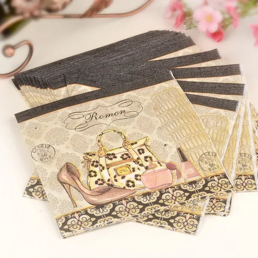 Servilletas estampadas de 20 piezas, cartera, zapatos, Perfume, Decoupage