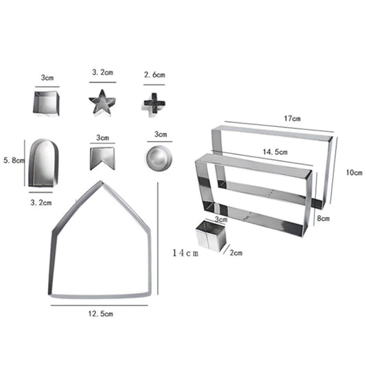 Cortador de galletas navideño 3D, juego de cortadores de galletas de casa de jengibre de 10 piezas