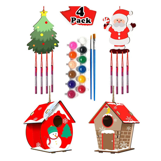 Kits de casas de pájaros para niños, manualidades de madera para fiestas de arte, pegatinas de pinceles para niños para construir y pintar