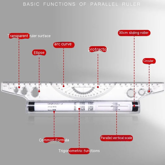 Herramienta de dibujo multifunción, regla de dibujo en rollo, métrica, regla rodante paralela, regla de línea angular