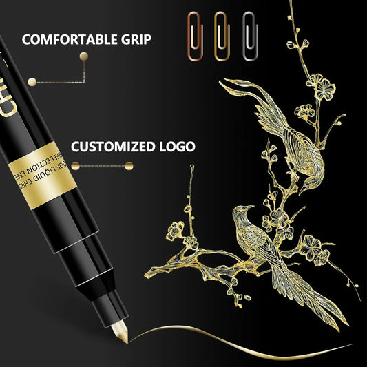 Rotulador de pintura cromada, lápices de pintura de espejo líquido reflectante, tinta dorada y plateada, punta de escritura de 1mm para modelo de metal, madera y plástico, 1/2/3 unidades