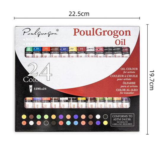 Juego de pintura al óleo profesional PoulGrogon, tubo de 12ml, 24 colores, no tóxico, para artistas.
