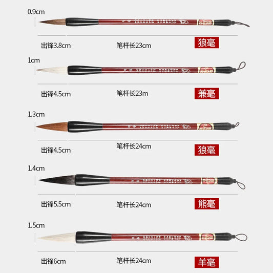 Caja de pinceles de pintura de caligrafía china, juego de pinceles de pintura de pelo de lana, 7 piezas