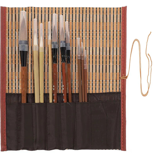 Juego de pinceles chinos para caligrafía, 11 Uds., pelo de comadreja, con estuche de bambú