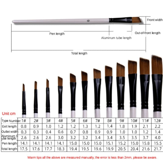 Juego de pinceles de nailon para pintura al óleo, juego de suministros de arte, 12 piezas