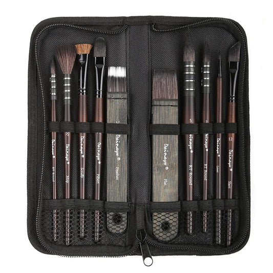 Juego de pinceles de pintura de acuarela de pelo de nailon de imitación de ardilla, de alta gama, juego de 10 piezas en bolso de tela Oxford