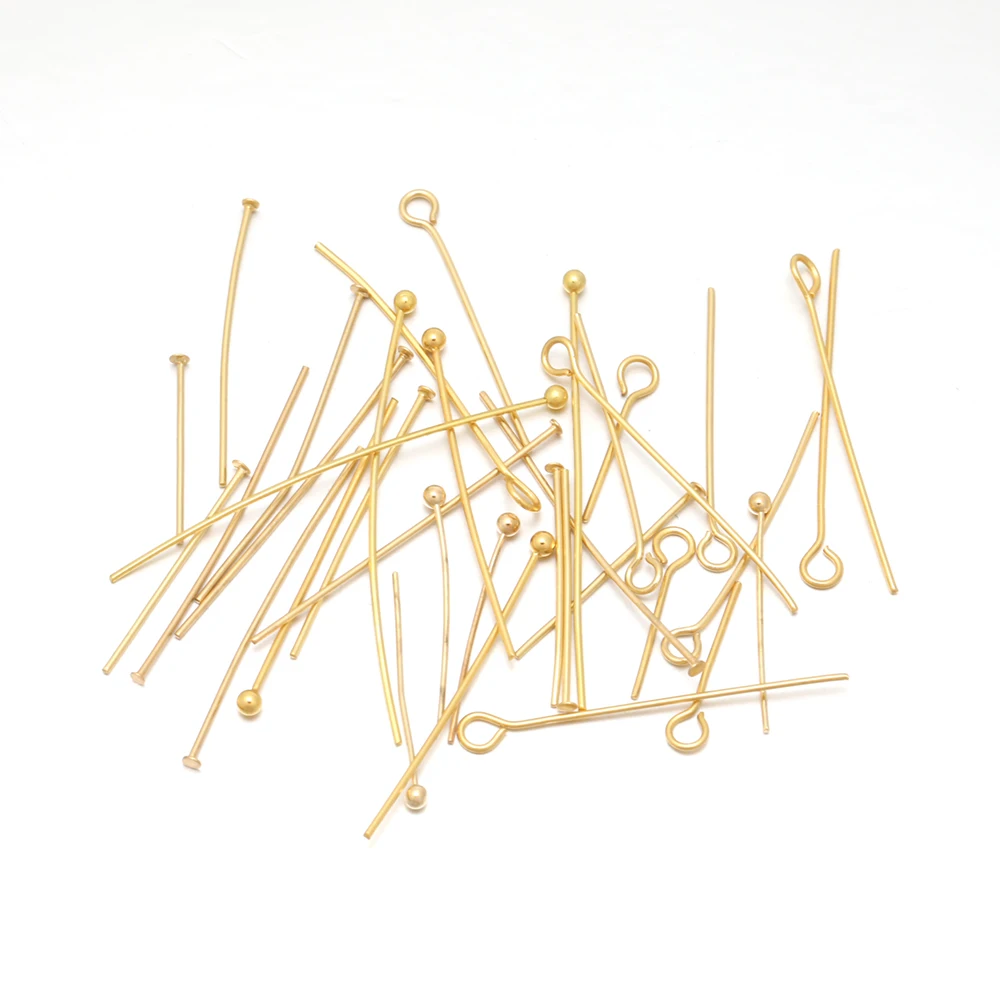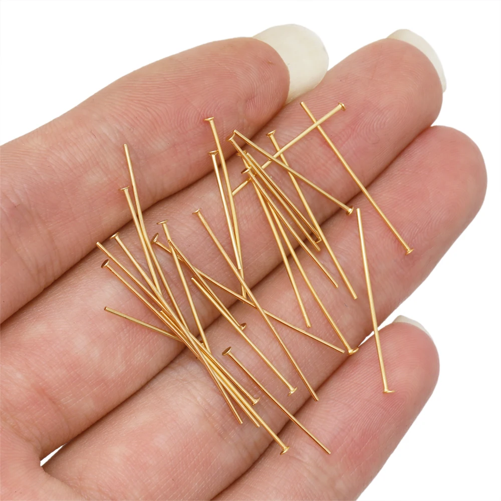 100/50 Uds. Cabezas de acero inoxidable, de cabeza plana, de bola de Color dorado para accesorios de joyería