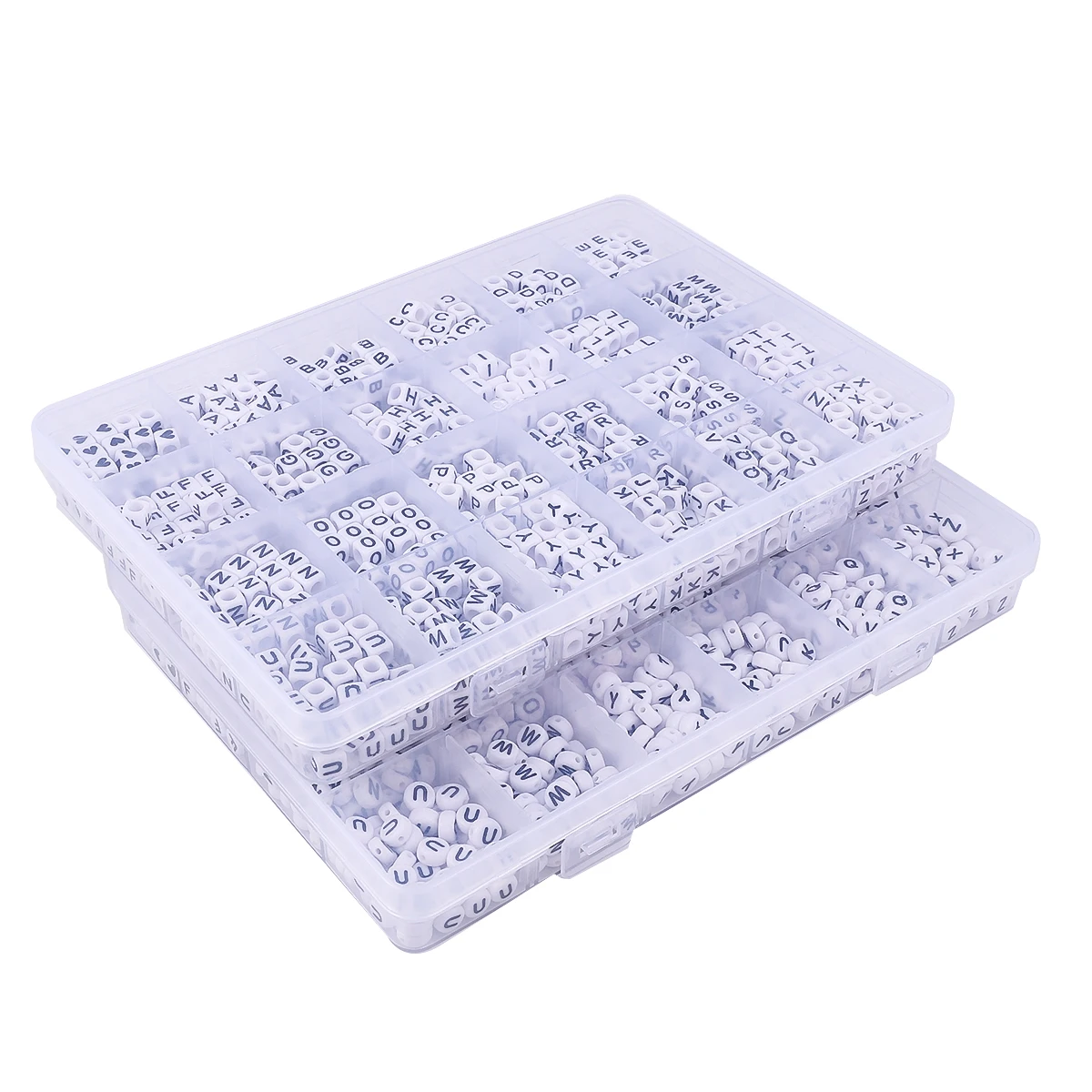 Nombre del producto: 24 cajas de rejilla acrílico 26 letras cuentas planas cuentas cuadradas