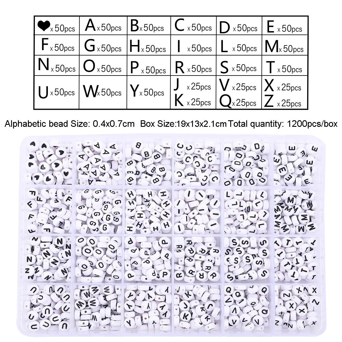1120, 1200 1400 Uds. aprox. Cuentas acrílicas de 26 letras en forma de corazón, cuentas cuadradas, cuentas planas, material de joyería