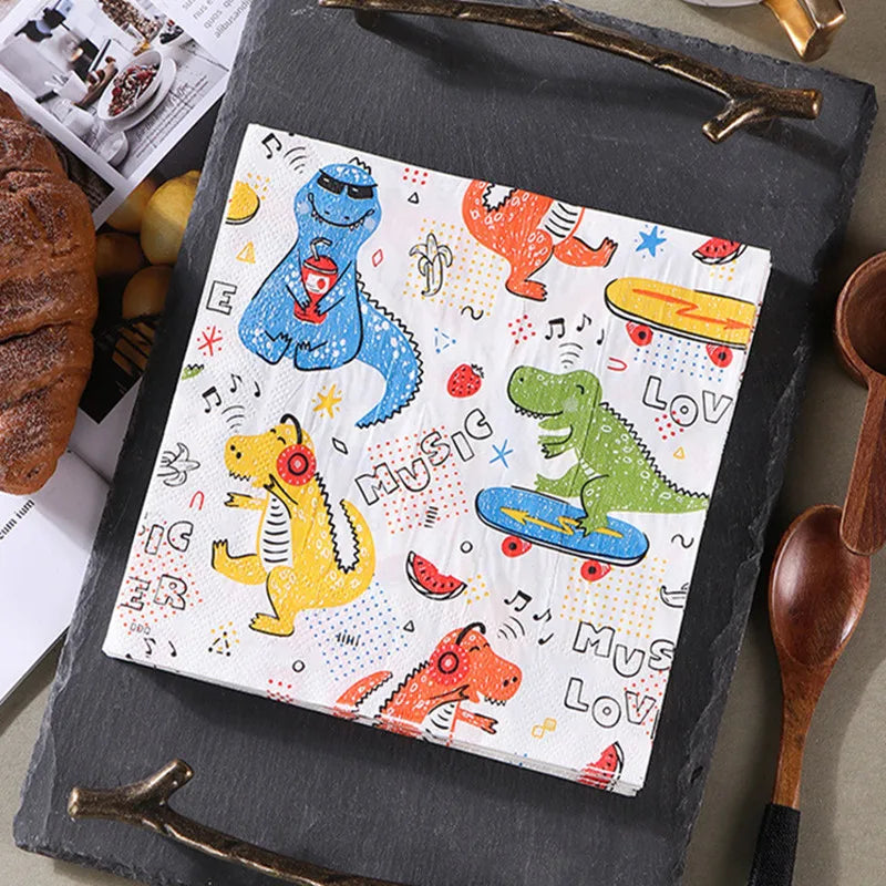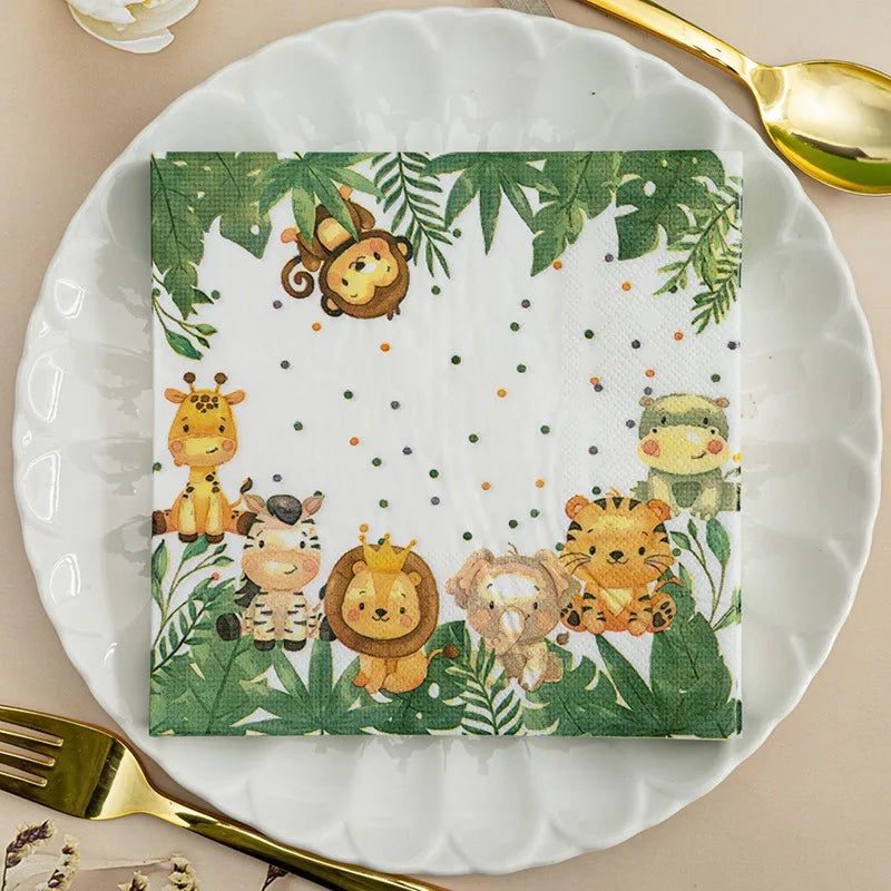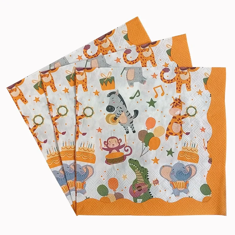 20 unids/pack de servilletas de papel con estampado de animales de dibujos animados, fiestas y decoupage