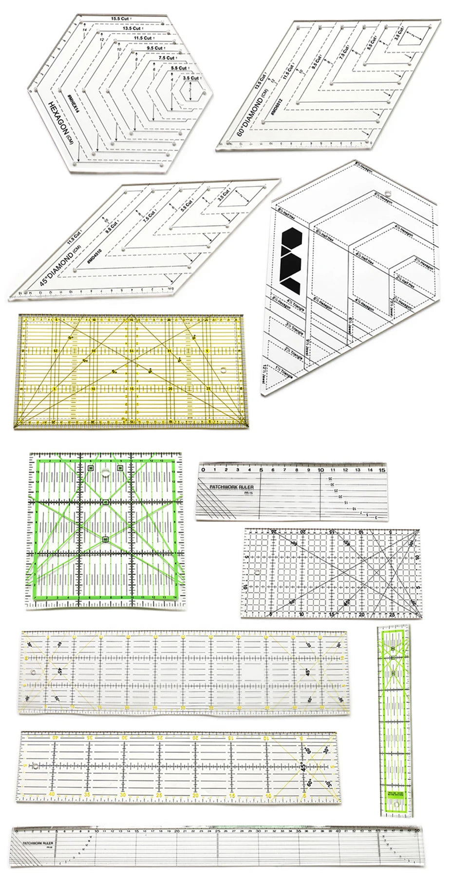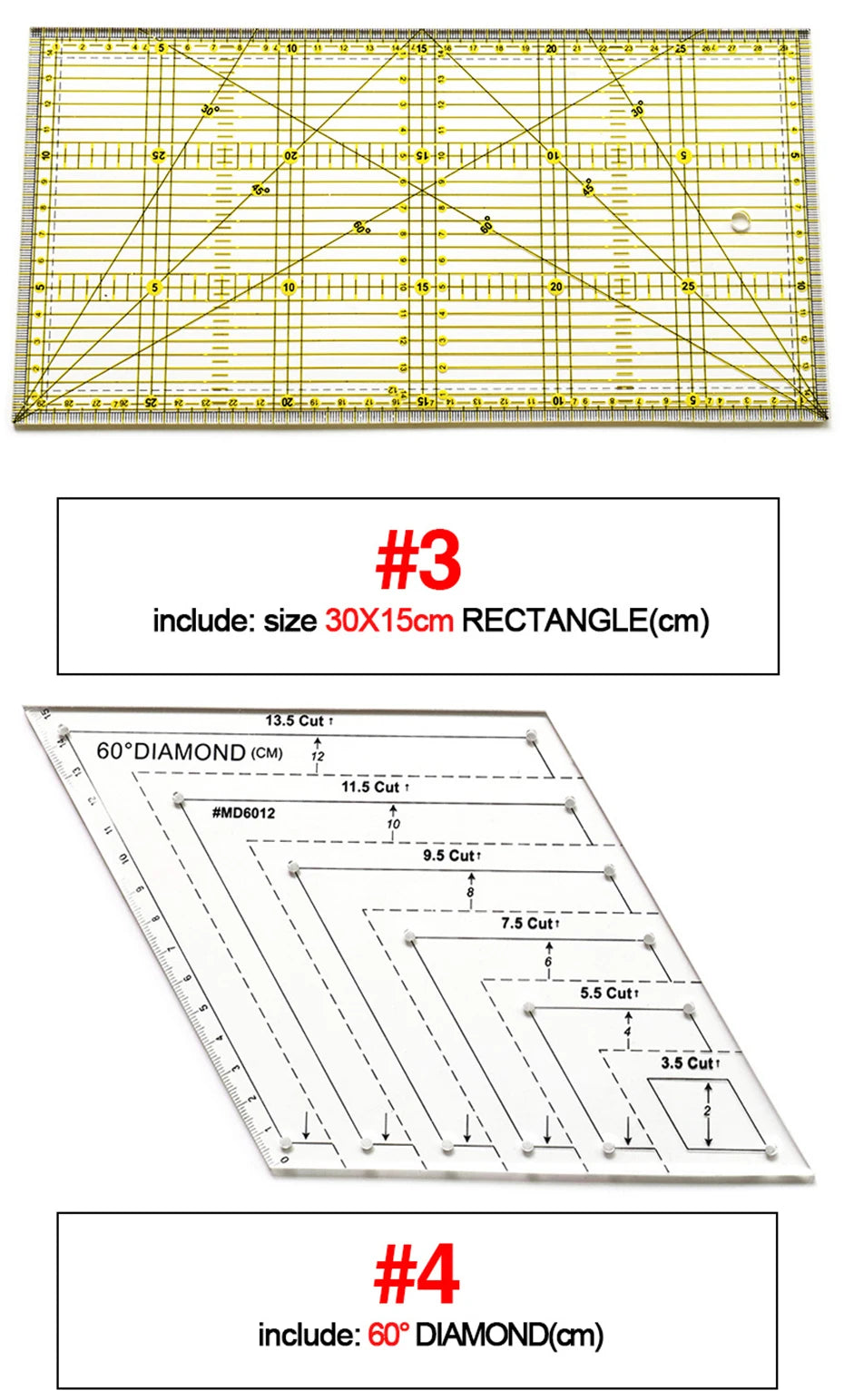 4 unids/set juego de reglas de retales, reglas de costura acrílicas, herramientas de dibujo de costura para tela, ropa, corte, regla para acolchar, herramienta DIY