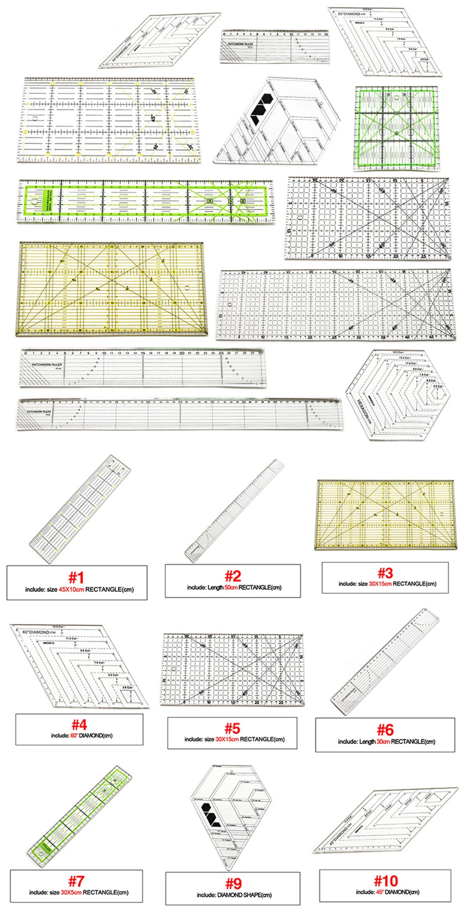 Nombre: 4 unids/set de reglas de costura, acrílicas
