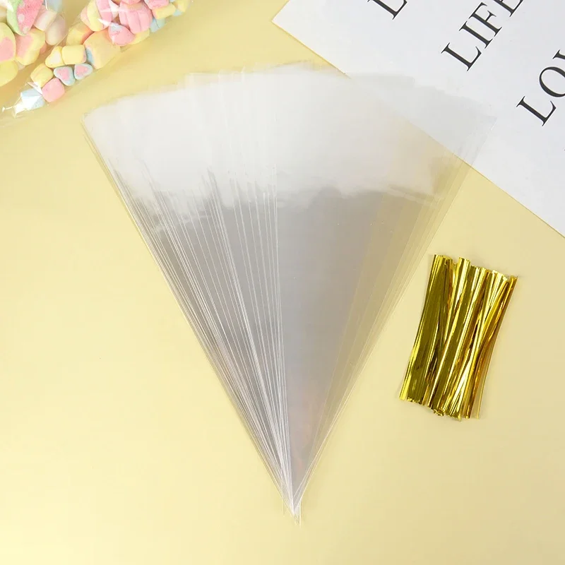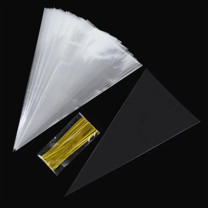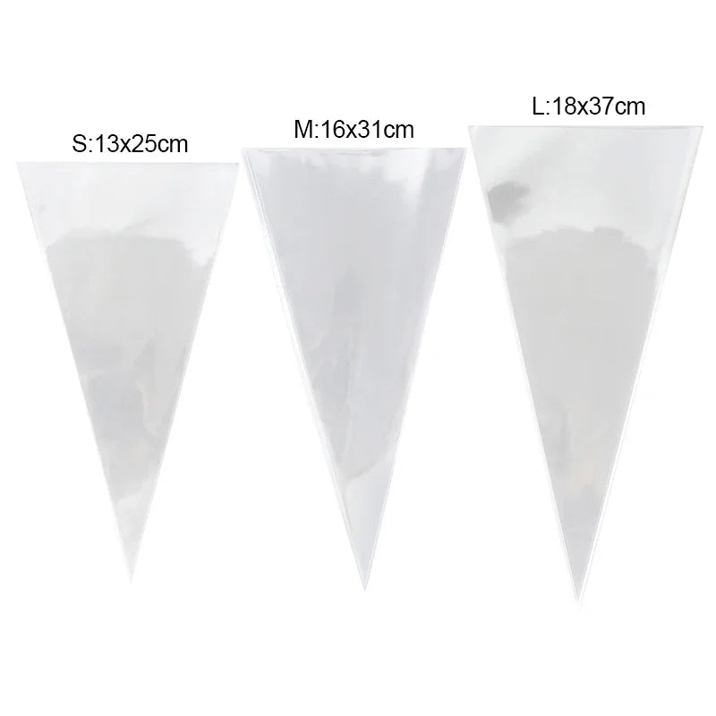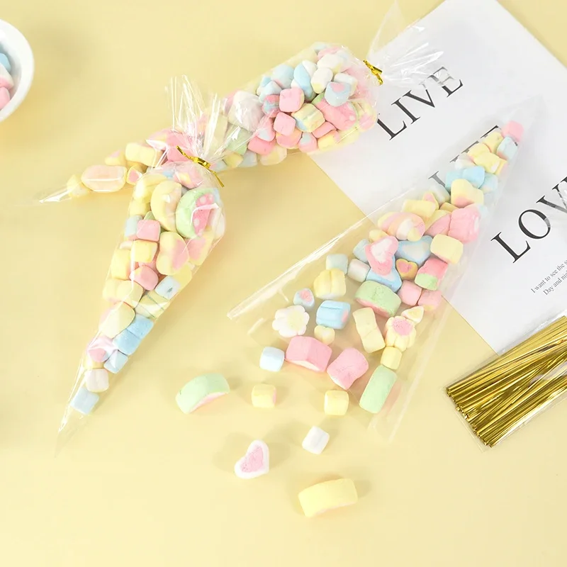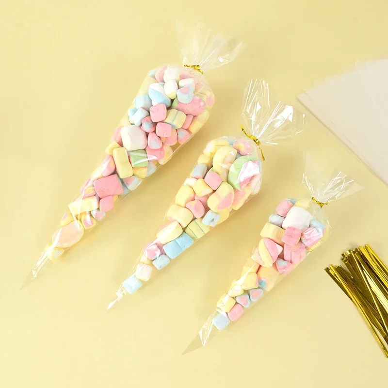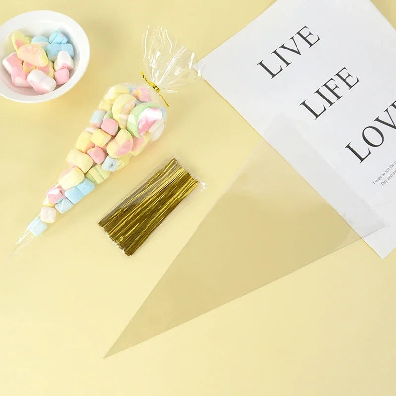 50 Uds. Bolsas de almacenamiento de dulces de cono transparente