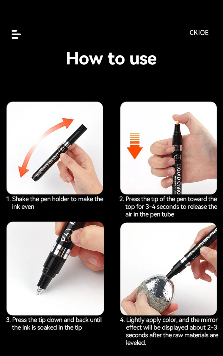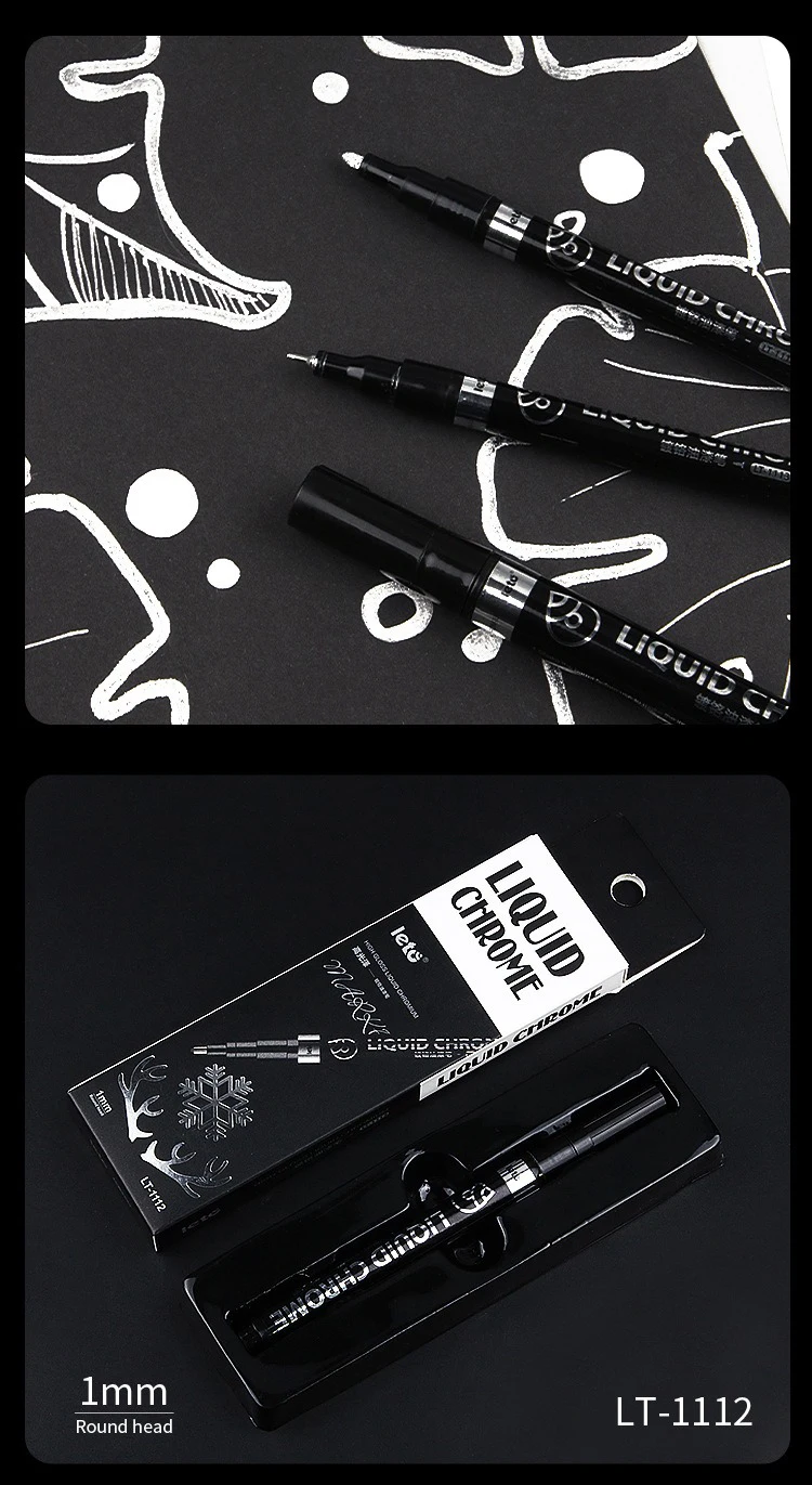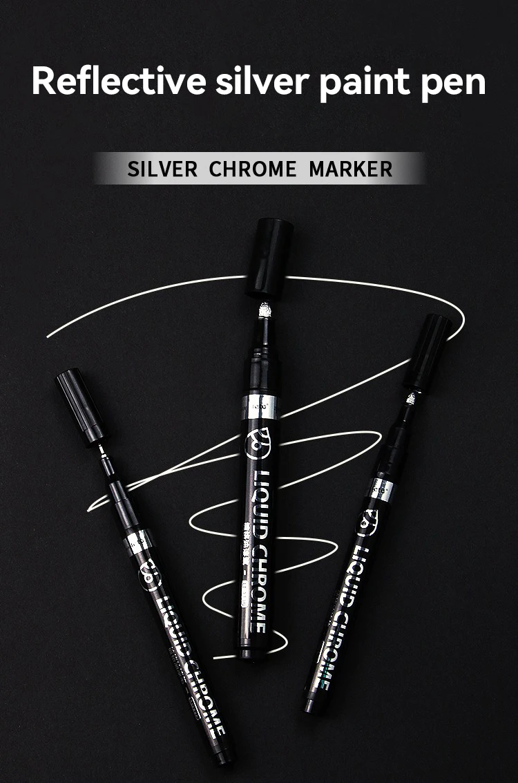 Nombre: Bolígrafos de pintura espejo, tinta plateada, dorada y otros, punta de escritura de 1/2mm para modelo de Metal, madera, plástico y piedra, 1/6 Uds.