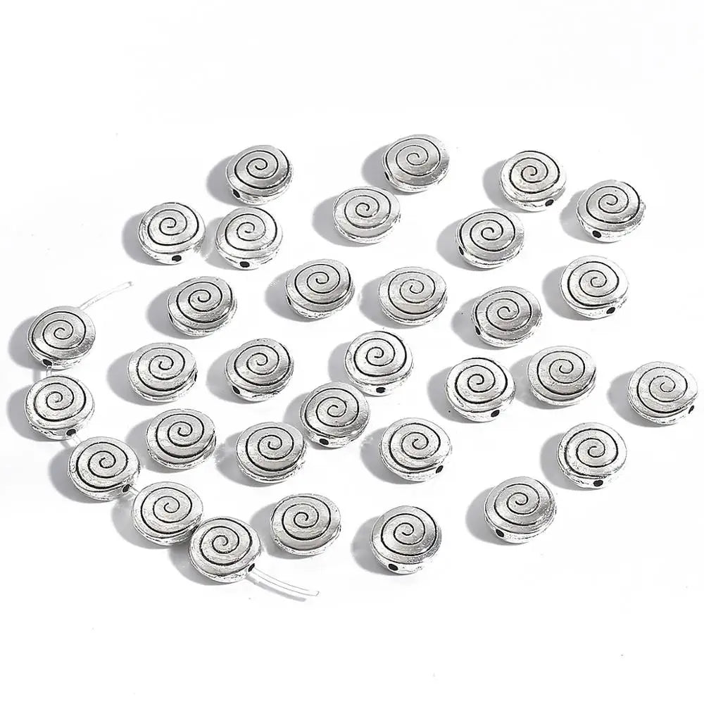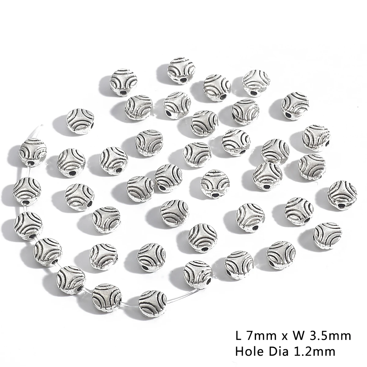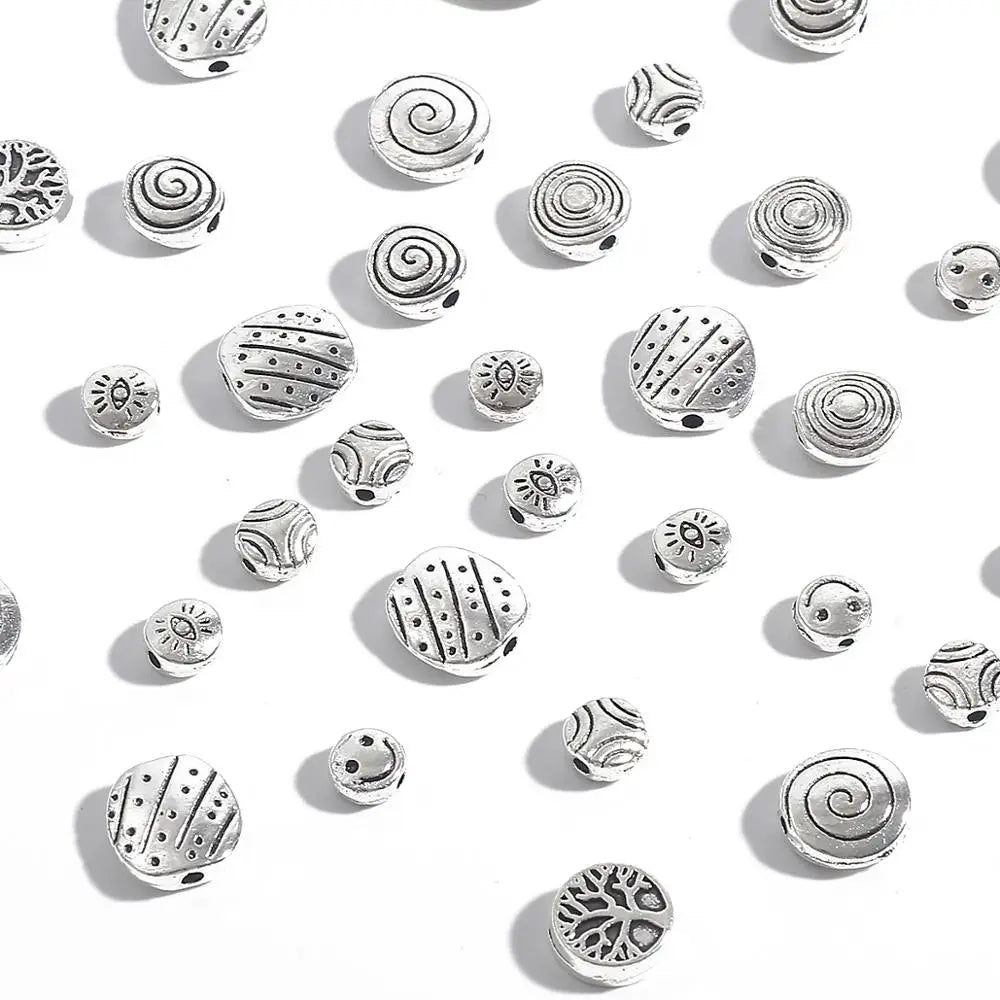 Nombre: Cuentas espaciadoras de aleación con patrón oblato, mostacillas de metal, 20-30 Uds.
