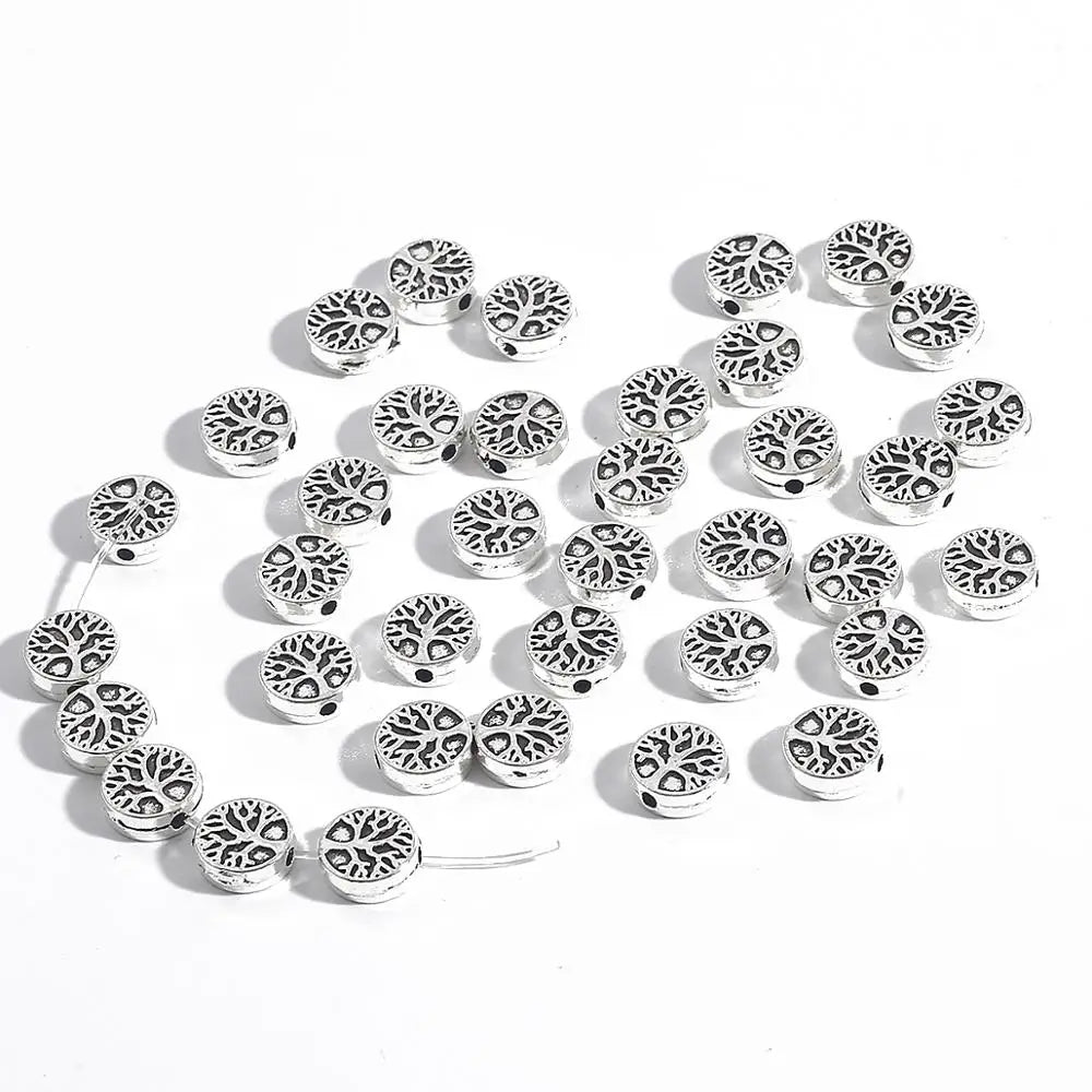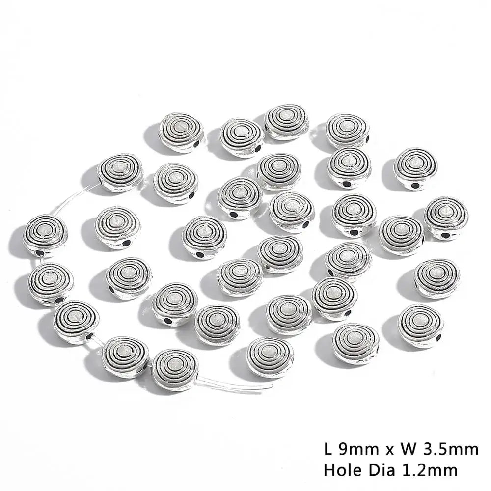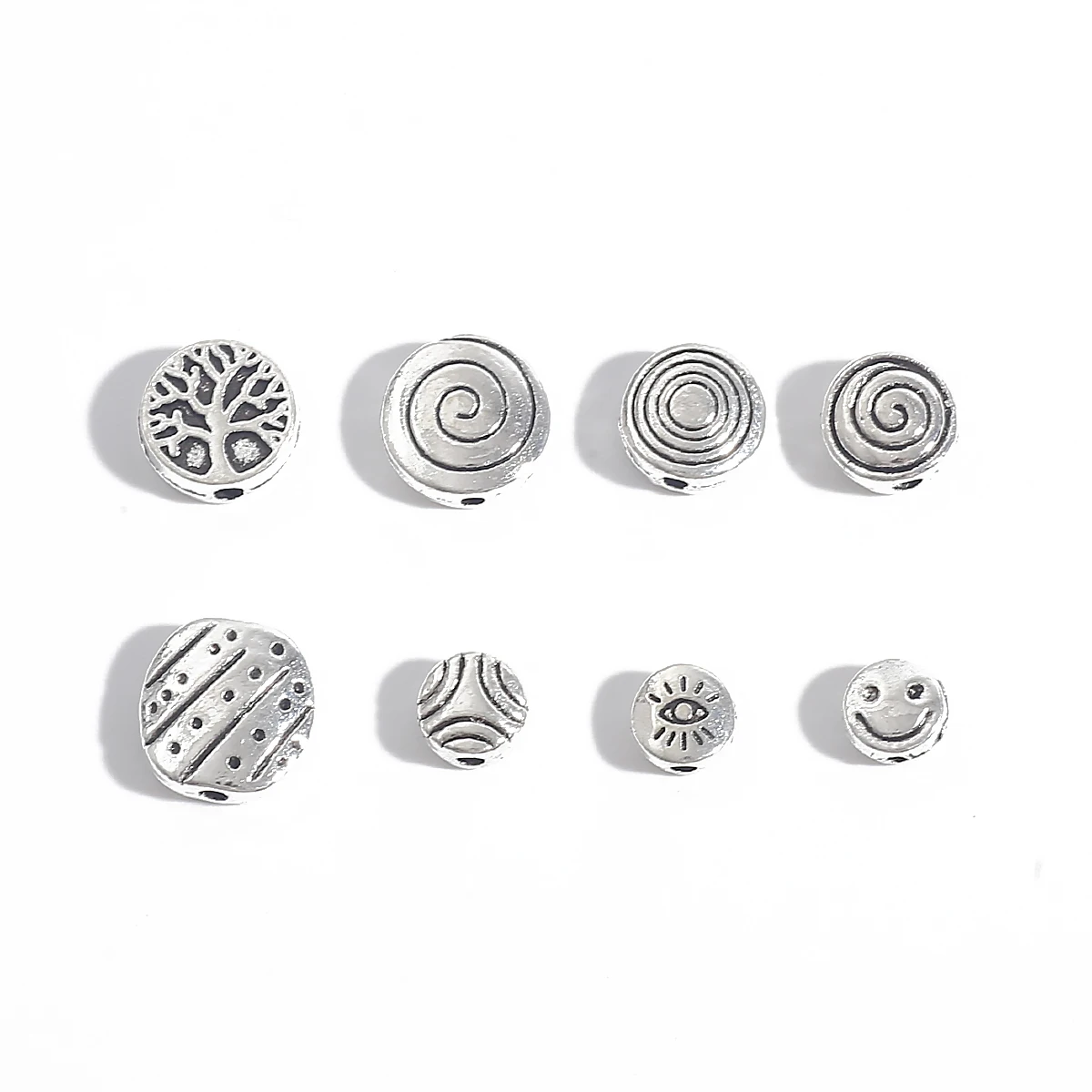Nombre: Cuentas espaciadoras de aleación con patrón oblato, mostacillas de metal, 20-30 Uds.