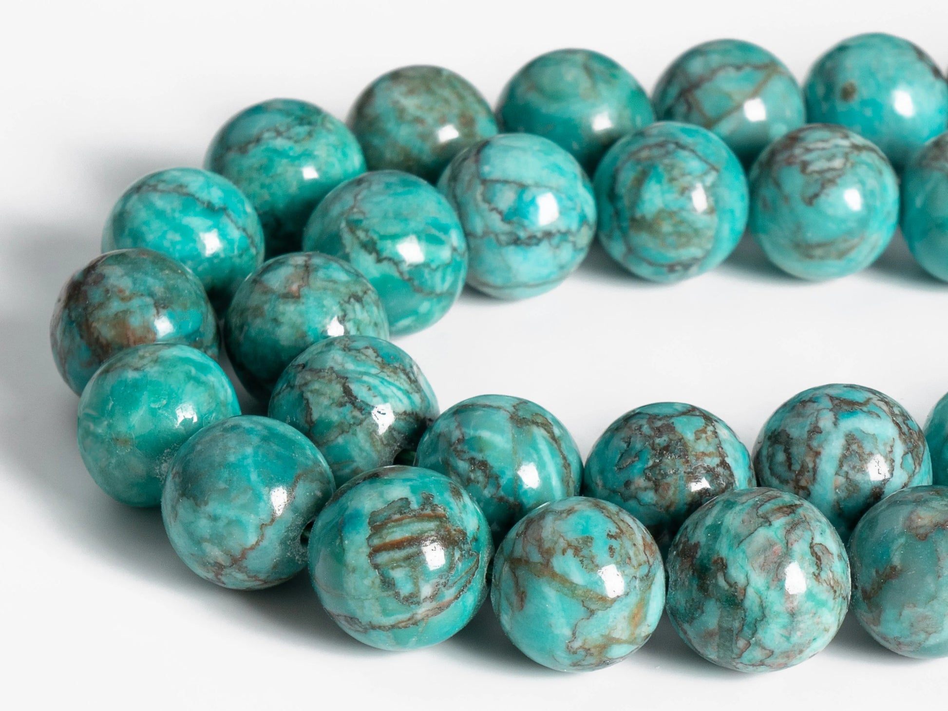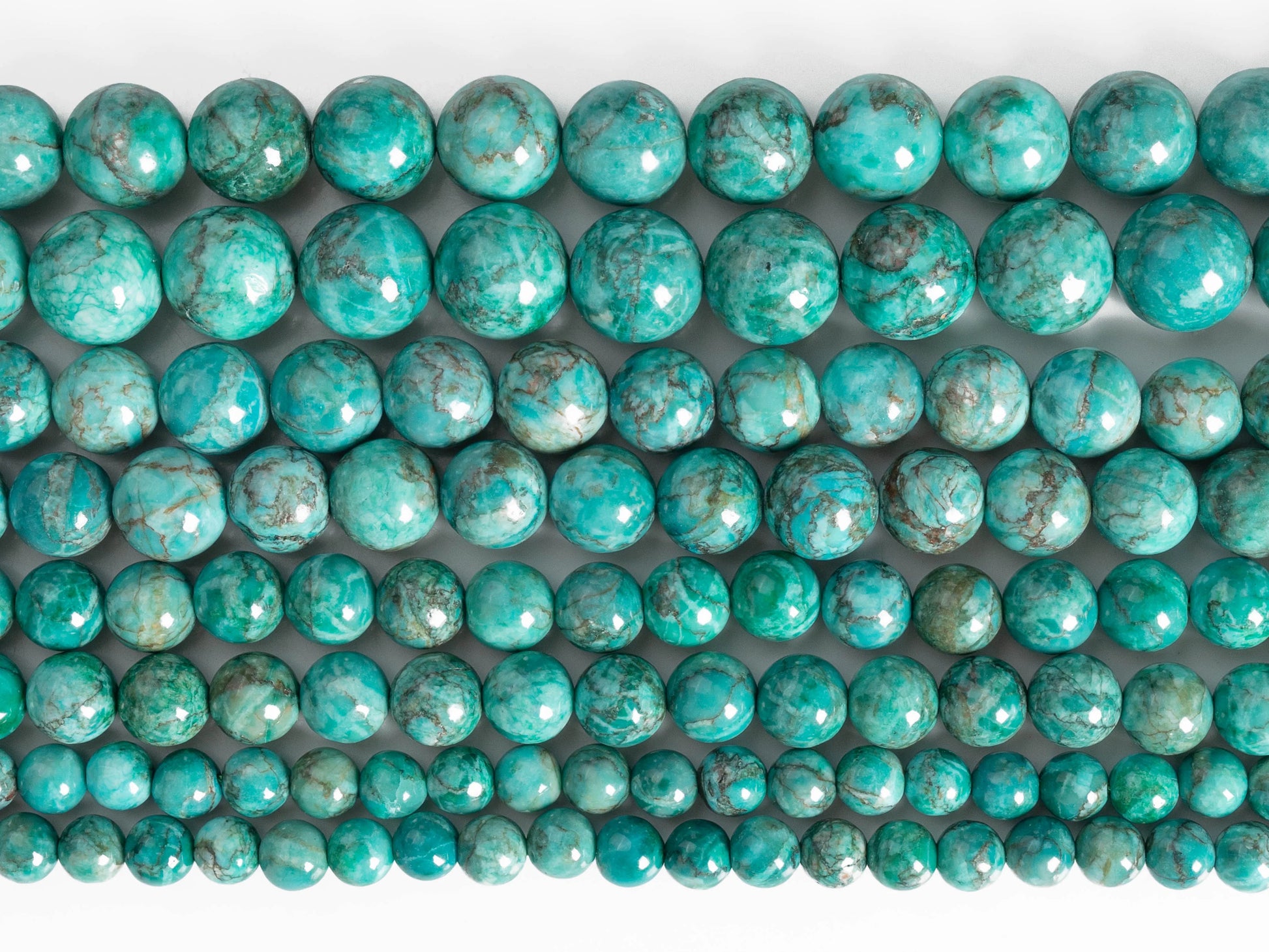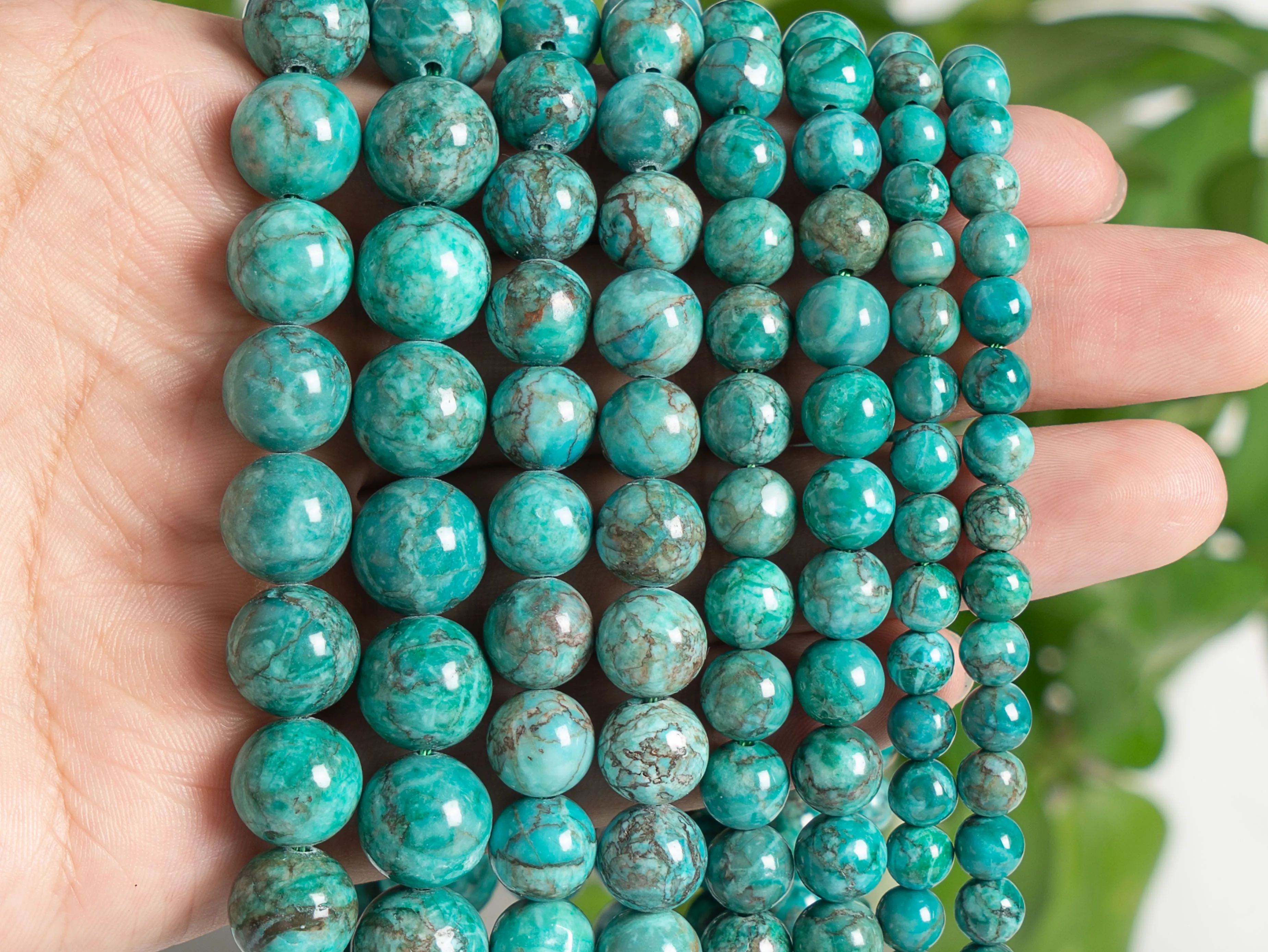 Nombre: Cuentas turquesas de magnesita verde pavo real, naturales y auténticas, piedras preciosas AAA de grado, cuentas redondas sueltas de 6/8/10/12mm.