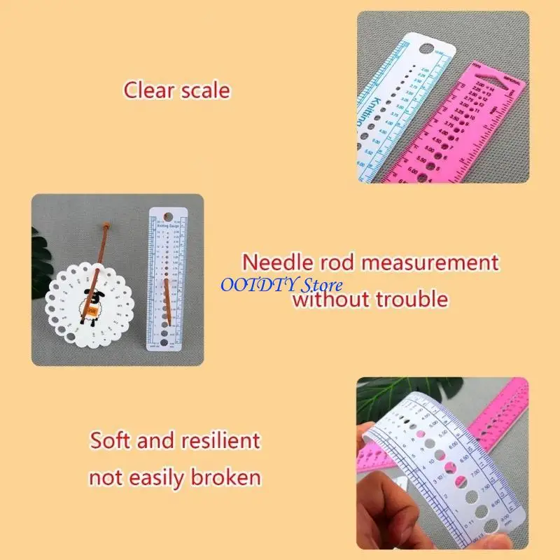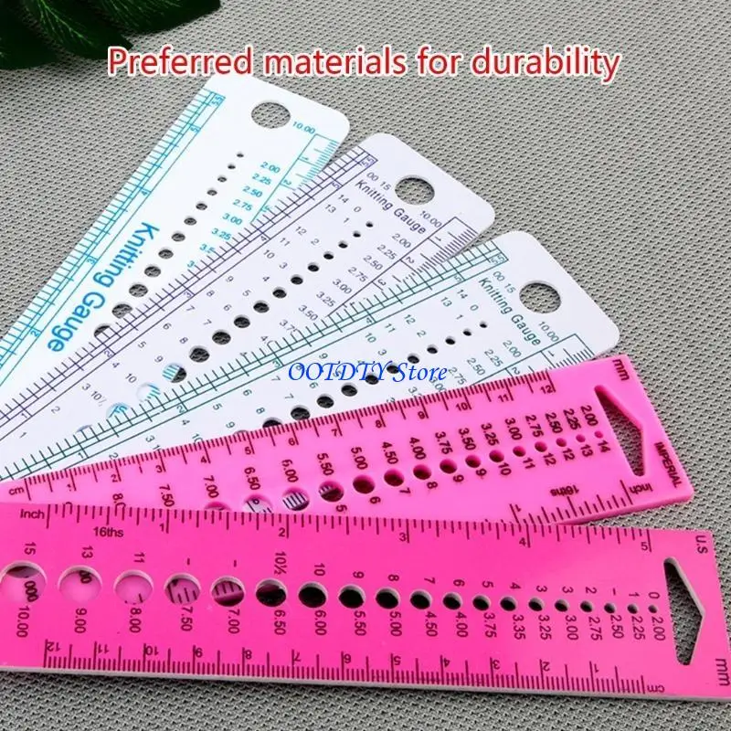 La regla de calibre de palillos para para tejer está hecha de material plástico duradero y flexible.La herramienta de medición puede indicarle qué calibre tiene un palillo o aguja.
