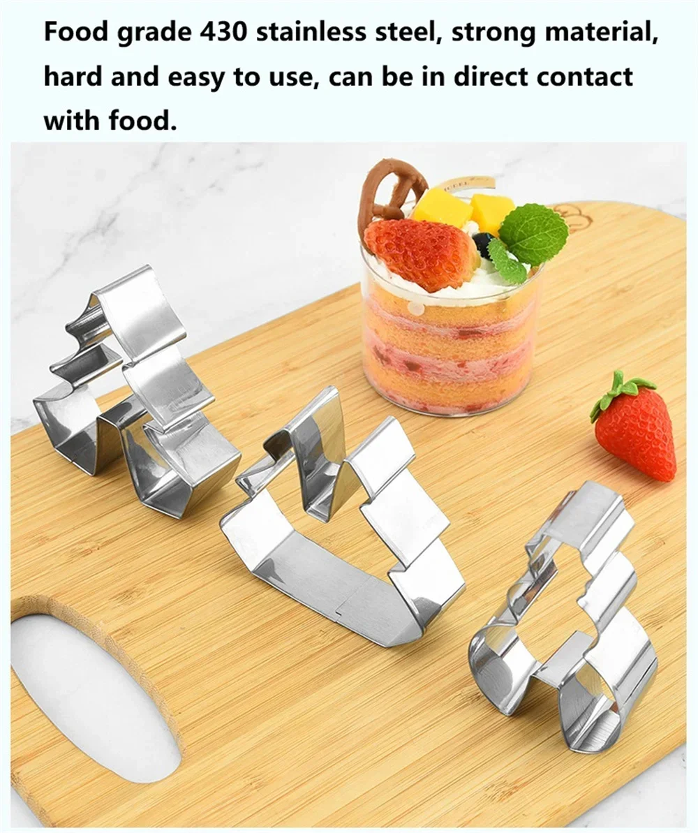 El juego de cortadores de galletas está hecho de acero inoxidable 430 apto para uso alimentario, que es resistente, no se deforma fácilmente y es resistente al óxido. No hay bordes afilados en la parte superior, por lo que sus dedos estarán seguros al presionar la masa. La limpieza es fácil con agua caliente y jabón y se seca con un paño antes de guardarlo. Puedes usarlo de forma segura para cortar, moldear y decorar divertidas formas de fondant para cualquier festividad. Perfecto para cualquier ocasión como cumpleaños, Halloween, Acción de Gracias, Navidad