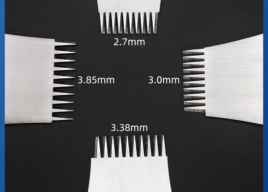 Tamaños: cuatro modelos, separación de 2,7 mm, separación de 3 mm, separación de 3,38 mm y separación de 3,85 mm