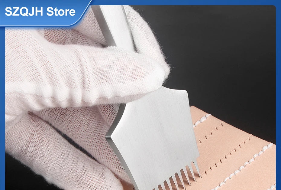 Simplemente colóquelo sobre el cuero que desea coser y martillar, perforando agujeros hasta el cuero con un grosor de 4,5 mm o menos.