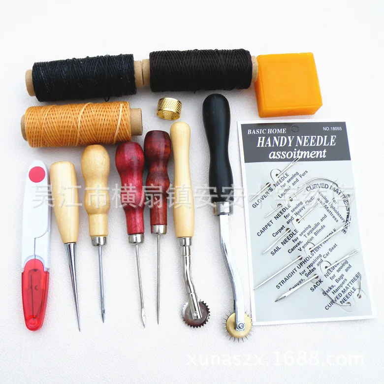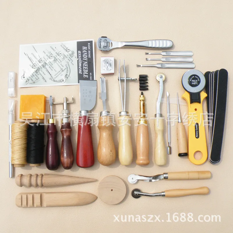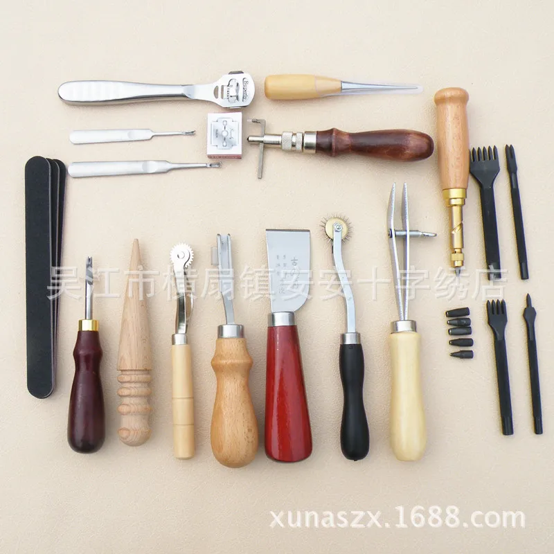 El paquete contiene: aguja, cuchillo, cortador, herramienta de perforación, trinchera, estampado de cuero, etc.