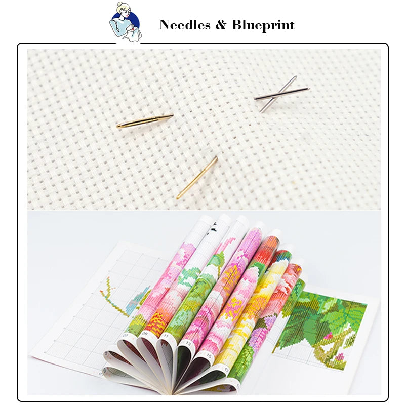 Contenido del paquete:1 * lienzo estampado + 1 * juego de hilos de algodón + 2 * agujas de bordar