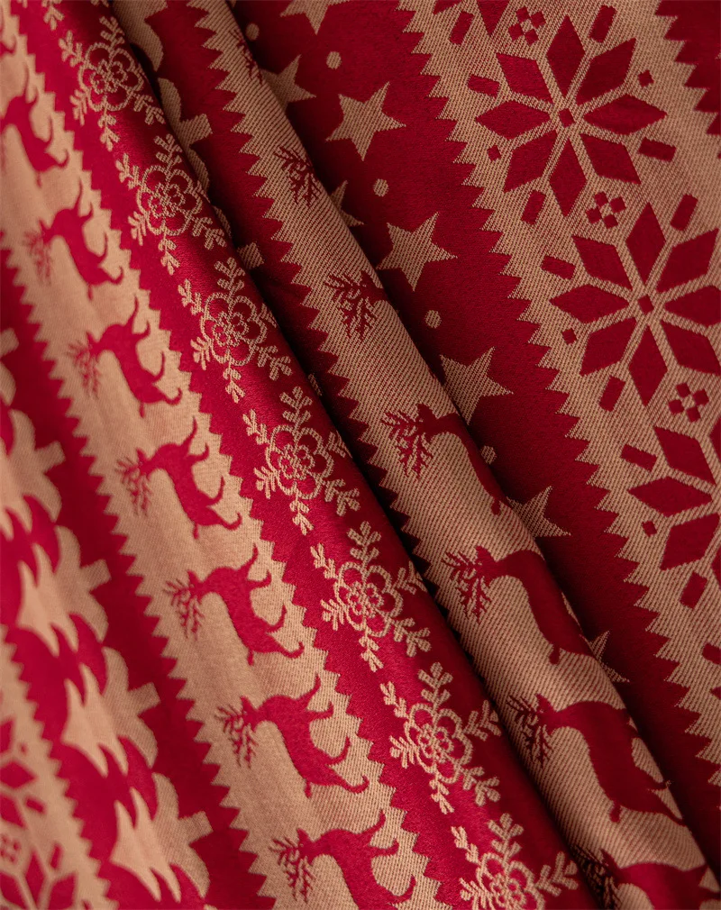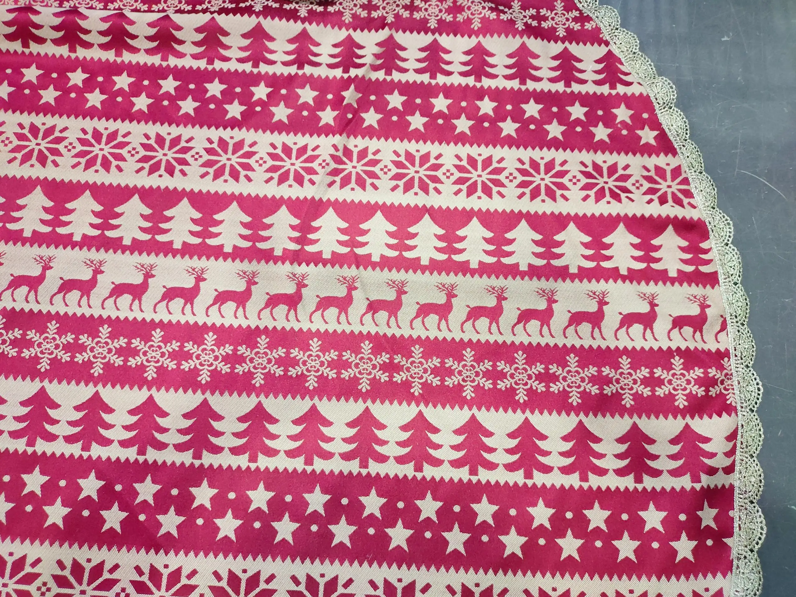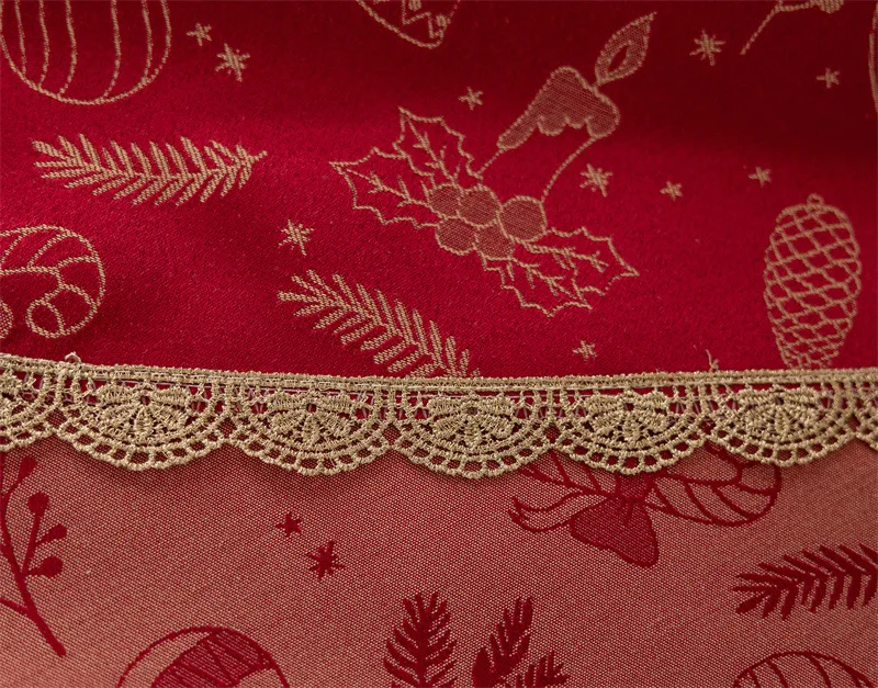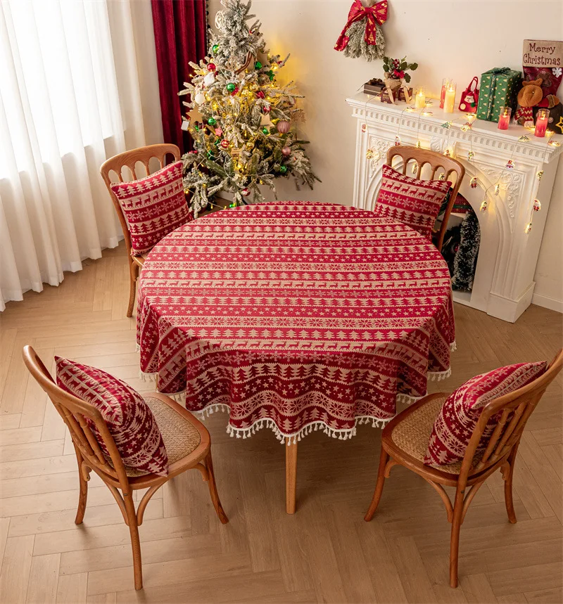 Mantel redondo navideño de Jacquard rojo, mantel impermeable con borde dorado de ciervo, con decoraciones de Navidad y forro de cojines