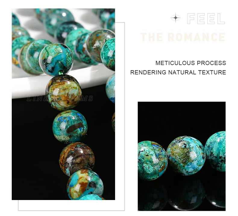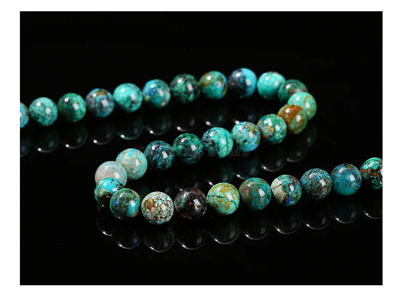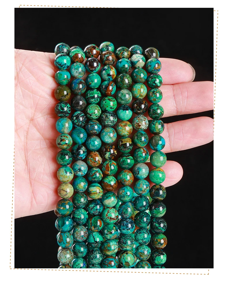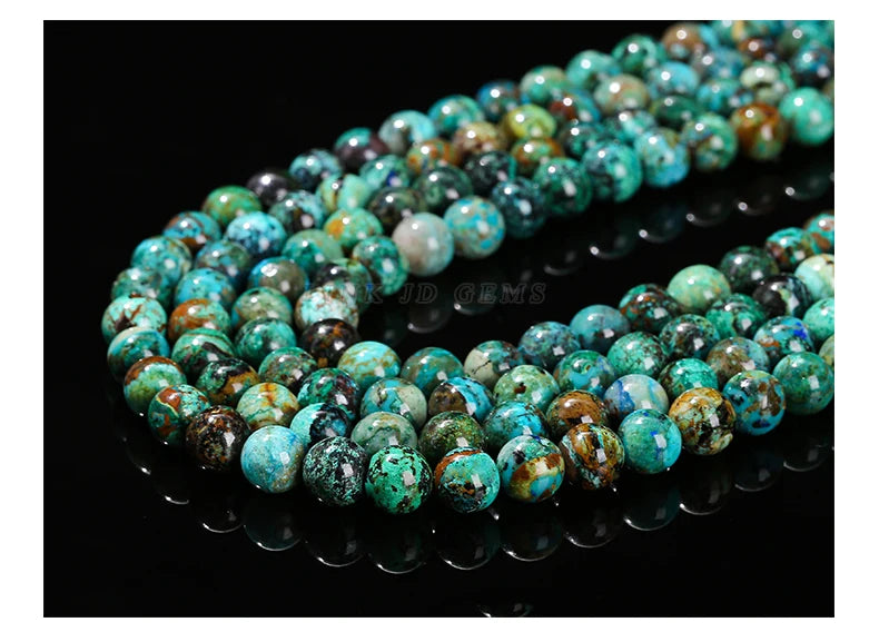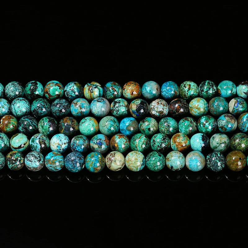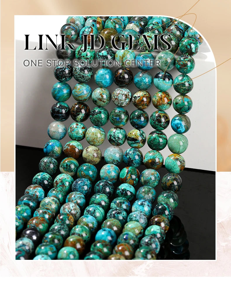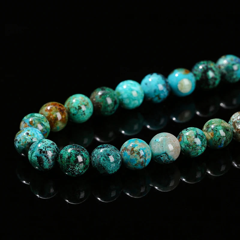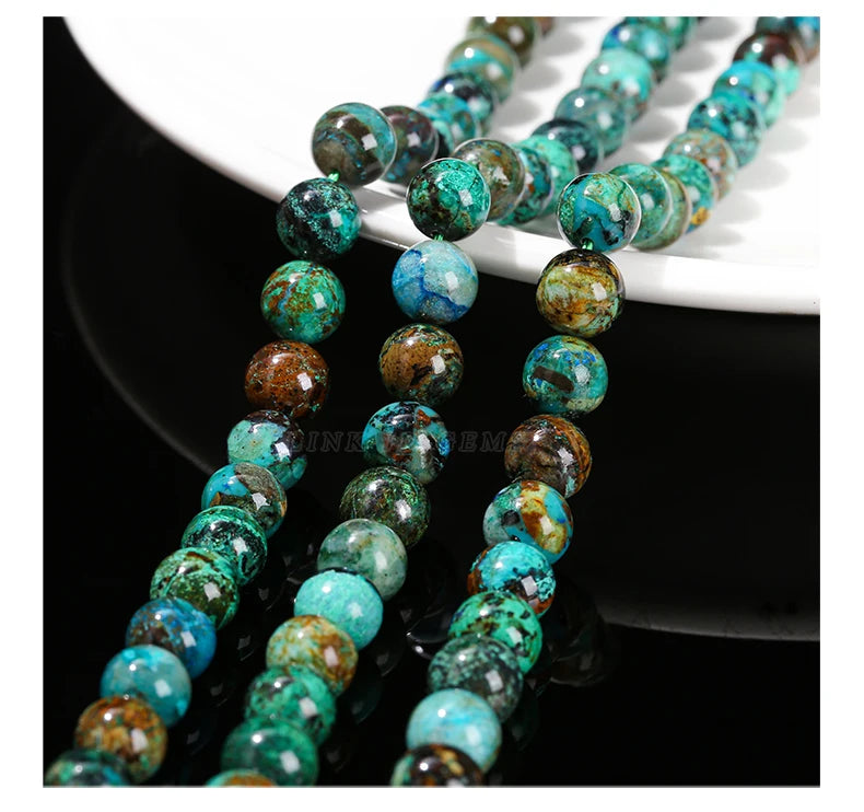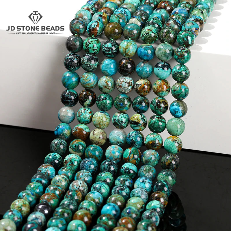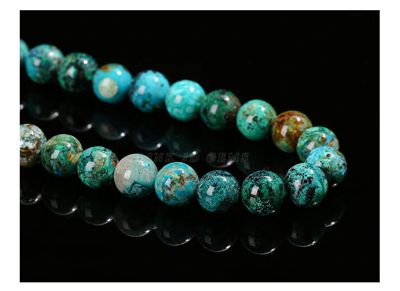 Nombre: Mostacillas de piedra de crisocola de azurita natural, redondo para fabricación de joyas, 6, 8, 10mm