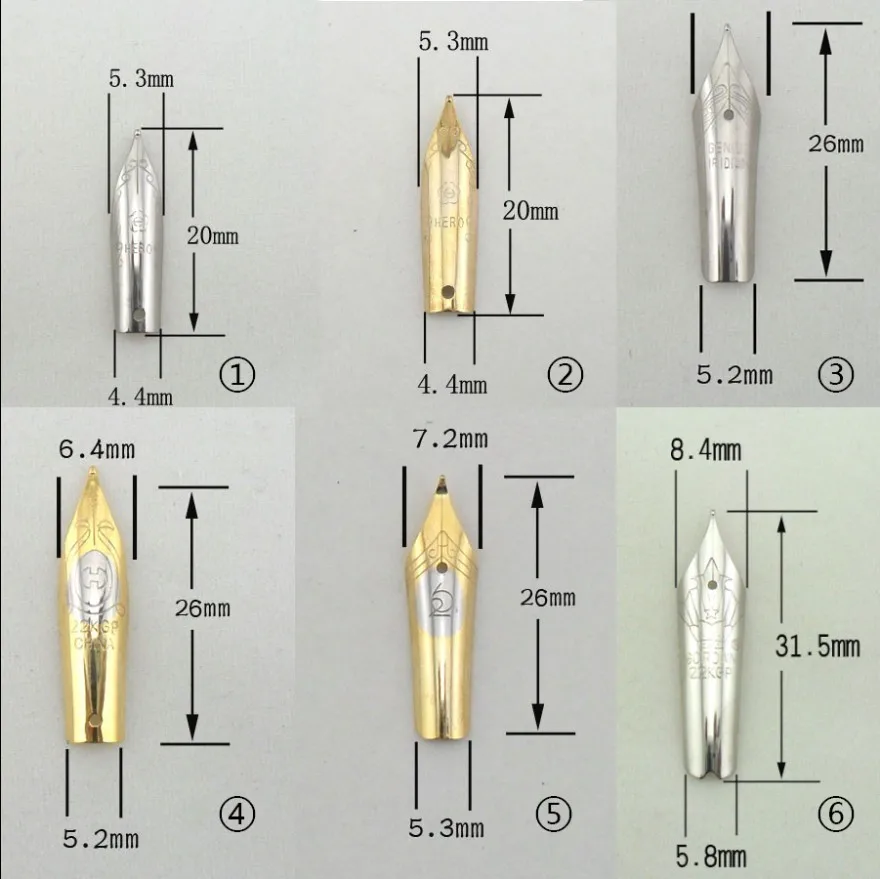 Puntas universales de 26mm y 31,5mm, piezas de puntas para pluma estilográfica compatibles con Hero Picasso Jinhao, puntas de repuesto