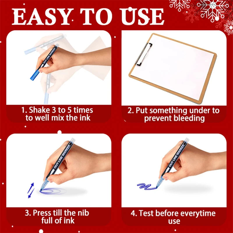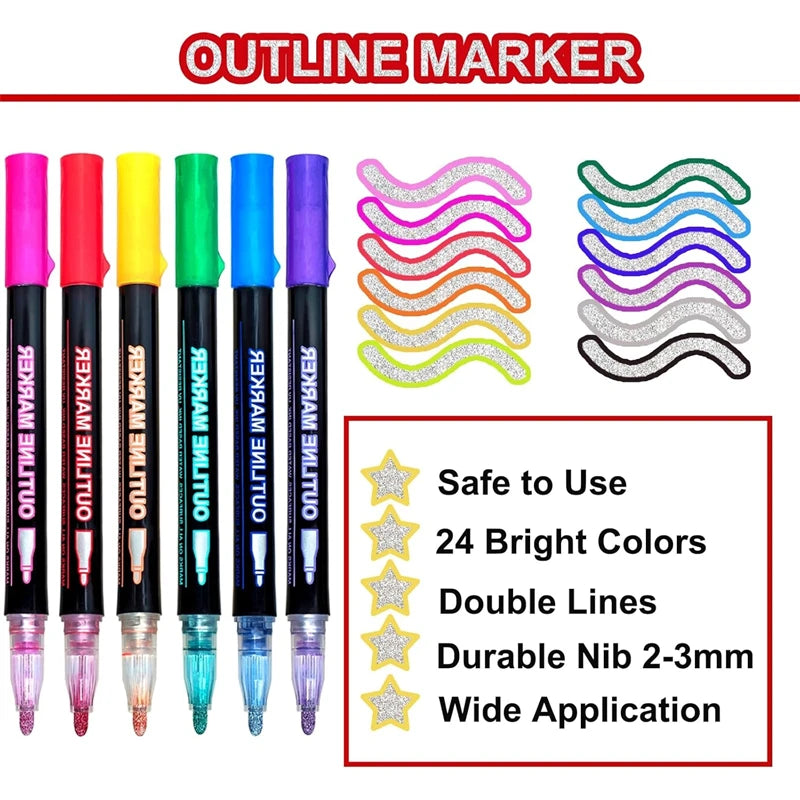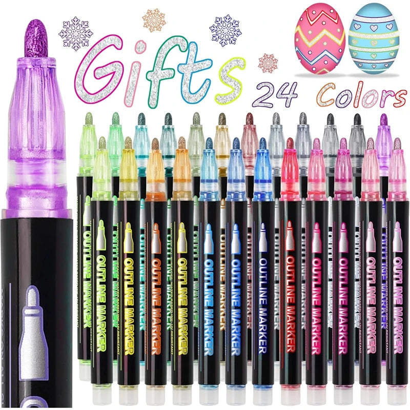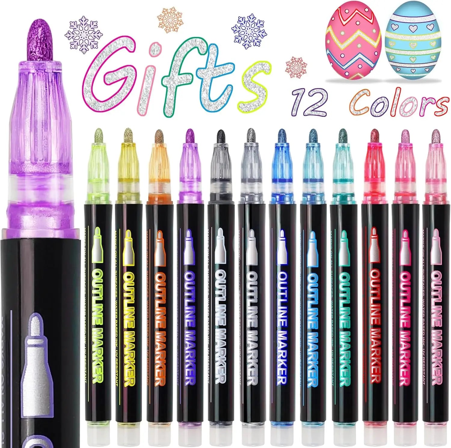 Rotuladores brillantes, bolígrafos de contorno para dibujar y escribir con purpurina 12/24