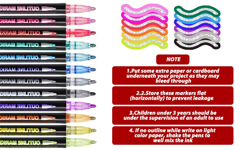 Nombre: Rotuladores brillantes, bolígrafos de contorno para dibujar y escribir con purpurina 12/24