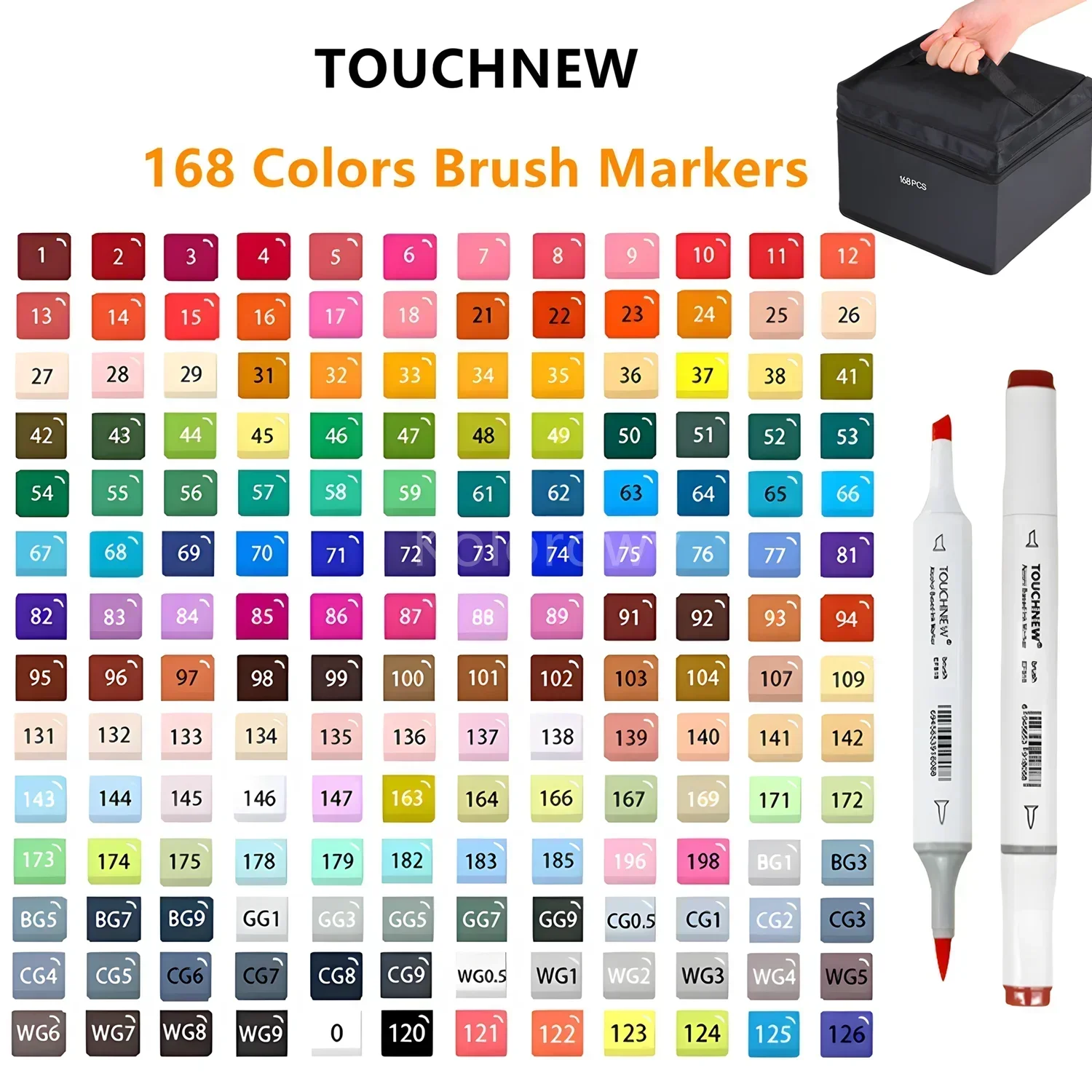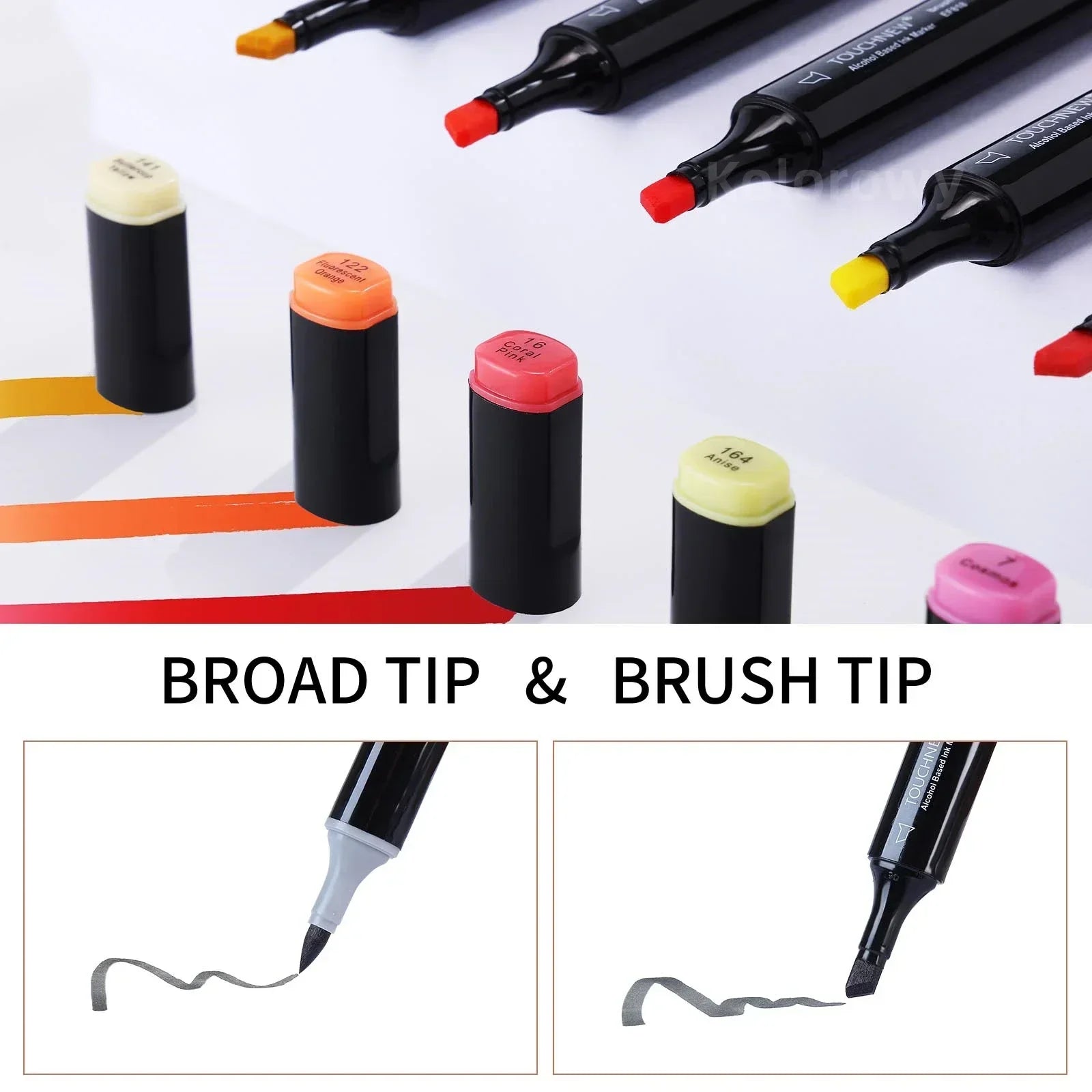 Nombre: Rotuladores de doble punta suave, TOUCHNEW 30/60/80 colores con punta pincel y cincel para artistas adultos