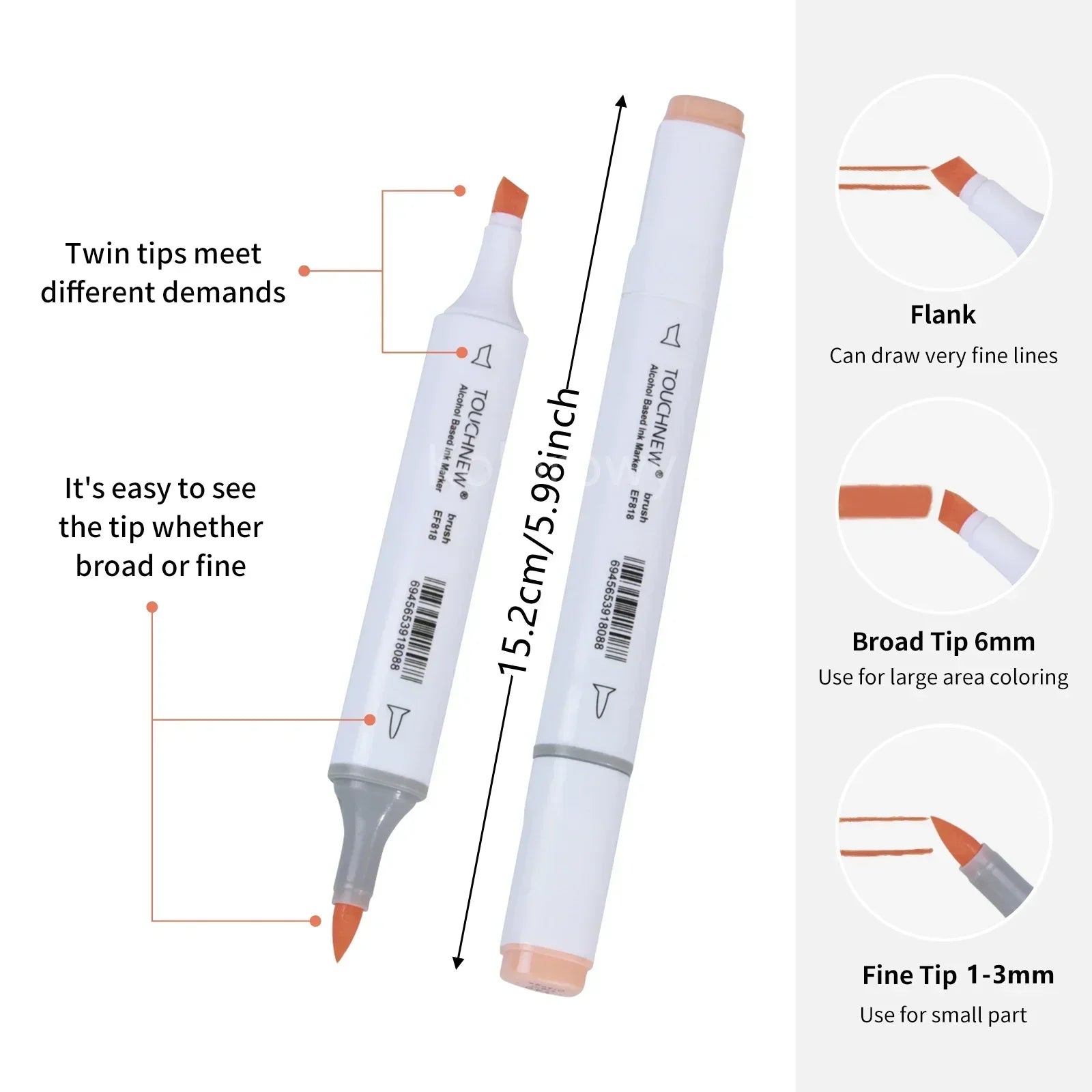 Marcadores artísticos con alcohol de doble punta con pincel y cincel.Cada marcador de punta de pincel tiene un diseño de doble punta, lo que proporciona una gran versatilidad.Puede elegir la punta del pincel para barrer, detalles, trazos caligráficos o la punta ancha del cincel para colorear rápidamente áreas grandes.Los marcadores de pincel de alcohol TOUCHNEW son más duraderos y no se deshilachan fácilmente.