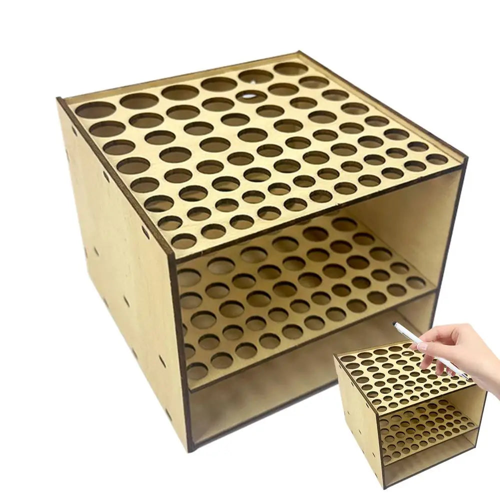 Soporte para pinceles y lápices, estante de madera de 67 agujeros